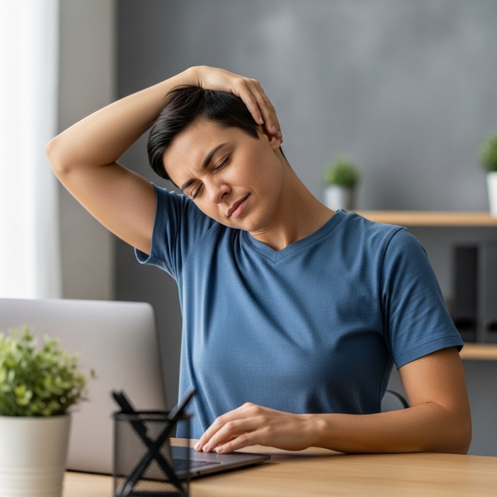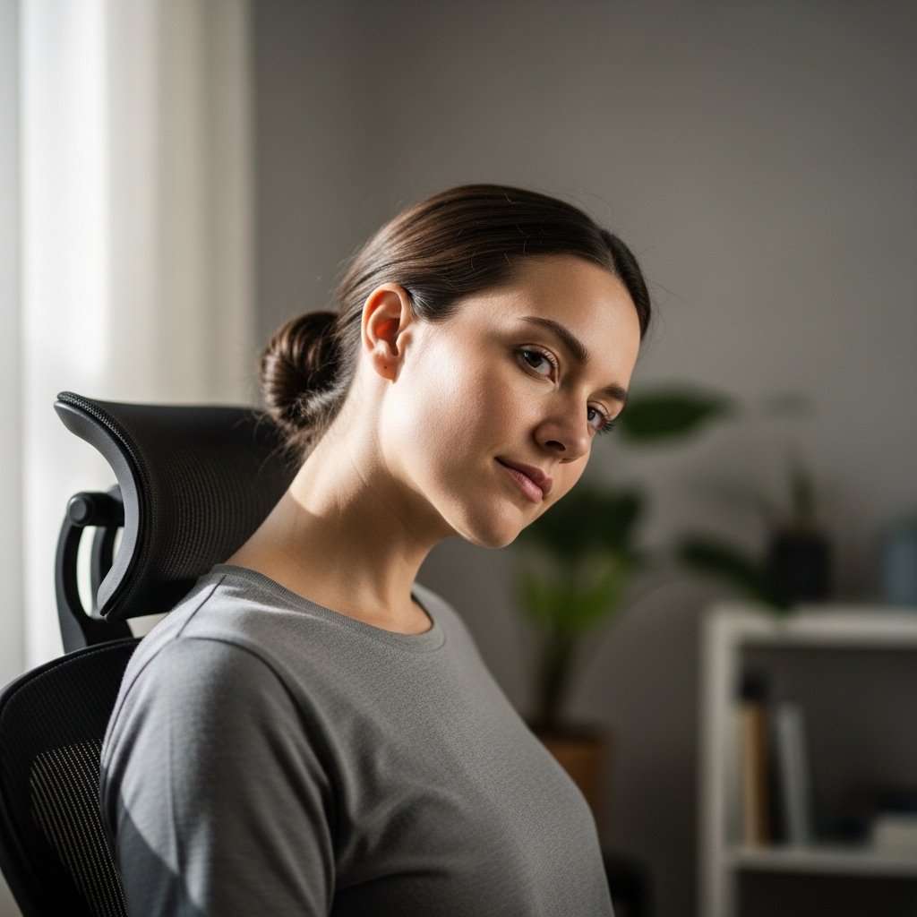 Side neck muscles respond well to vertical elongation. The stretch uses upright posture and slow ear to shoulder movement. No shoulder lift occurs. Hold remains moderate. Alternating sides supports balanced length. This method supports lateral flexibility and comfort during driving or desk tasks.