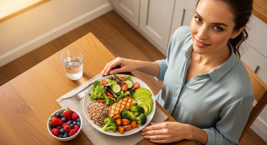 Meals rich in fruits, vegetables, whole grains, and protein provide nutrients that support skin texture and hair strength. A balanced plate often reflects in smoother looking skin and naturally resilient strands over time.