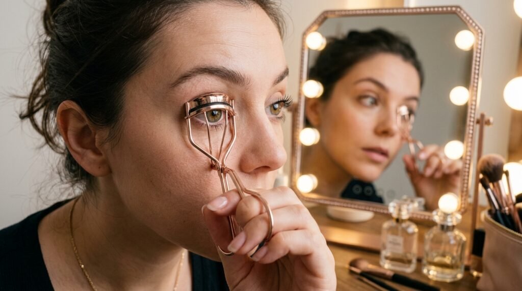 Instead of curling once, work in sections from root to tip. This technique gives a more natural curve rather than a sharp bend, making lashes appear longer and fuller.