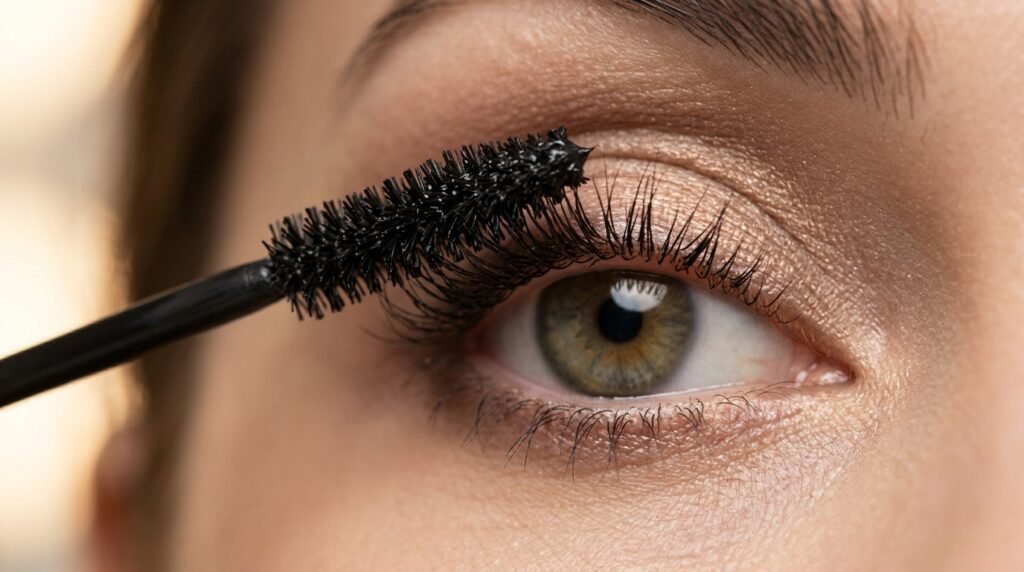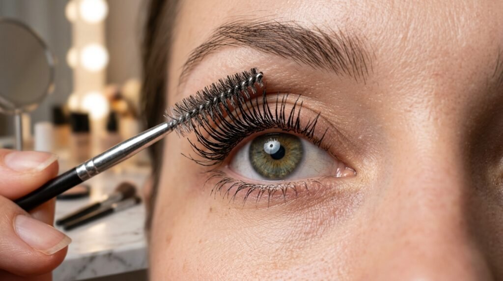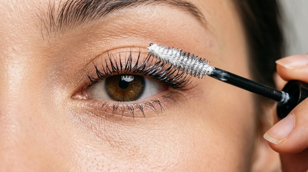 Wiggling the wand at the base of your lashes helps deposit more product at the roots. This creates the illusion of thicker lashes without heavy layering.
