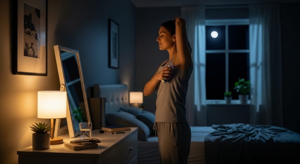 Using antiperspirant before bedtime allows the product to settle into sweat ducts while the body rests. By morning, protection often lasts longer and helps reduce sudden stress-related perspiration during busy hours.
