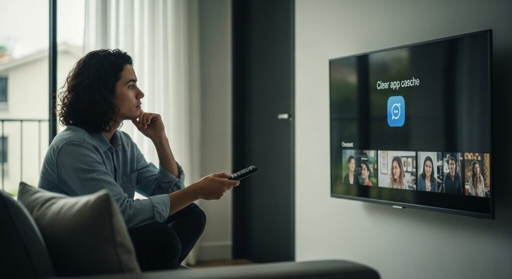 The Smart TV apps face the same clogging issue as phone applications when users install them over time which causes their functioning problems. The Netflix or YouTube application shows problems you need to access App Manager through settings and select Clear Cache to fix. The solution typically solves performance problems while keeping the application installed.
