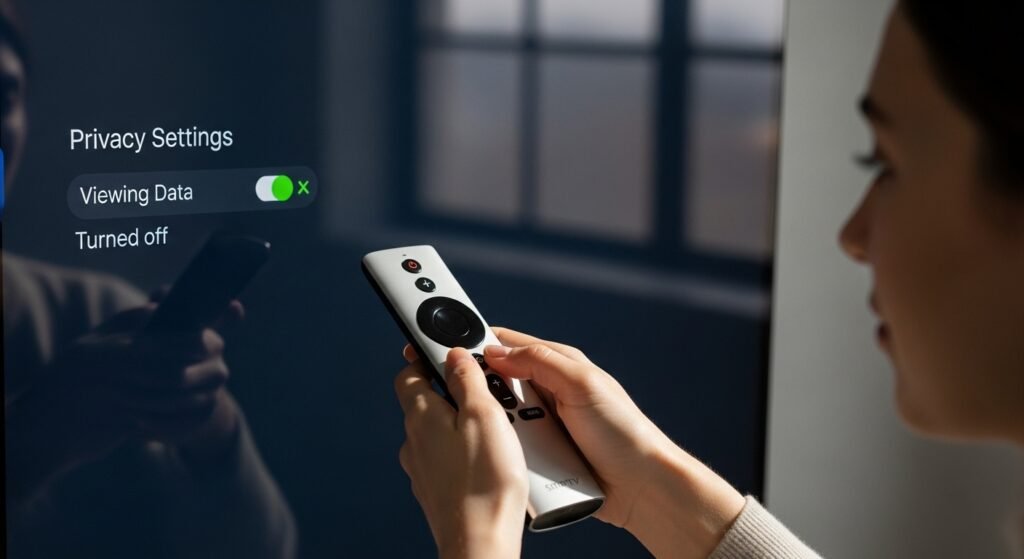 Automatic Content Recognition hidden setting enables the system to monitor your entire viewing history from Netflix to cable TV in order to deliver personalized advertisements on your other devices. The feature causes users to lose their privacy because it creates a huge privacy risk. The Viewing Data and Ad Tracking options can be opted out by users who access the Privacy section or Terms of Service menu on their television.