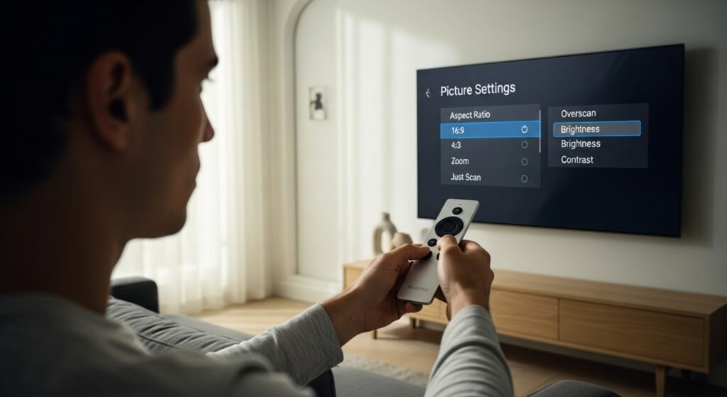 Adjust the “Overscan” or “Aspect Ratio”