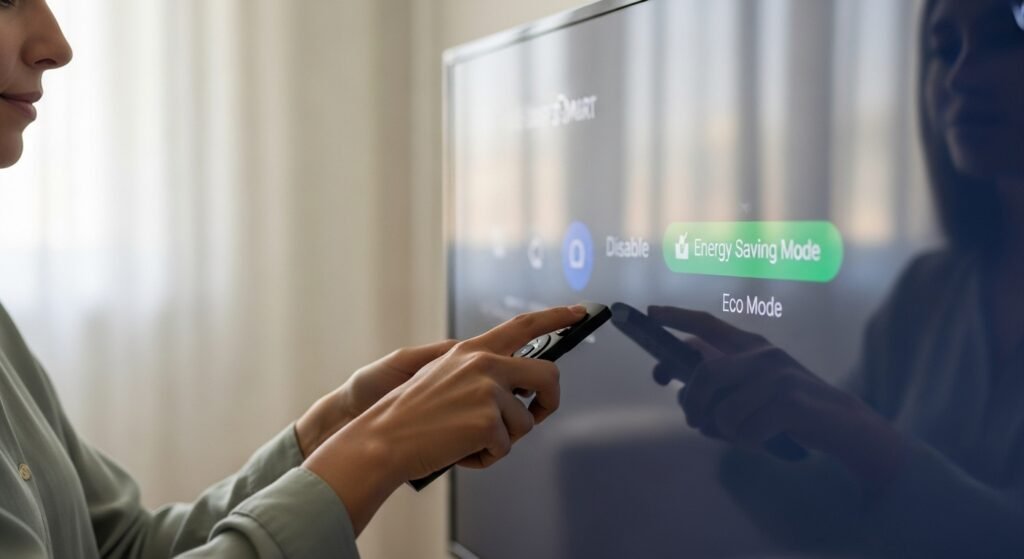 The Energy Saving or Eco Mode option appears environmentally friendly but it functions by dimming the backlight in response to ambient light conditions. The feature creates a display appearance that results in a blurred and lifeless screen. The television displays excessive darkness at maximum brightness because this setting functions as the primary reason.