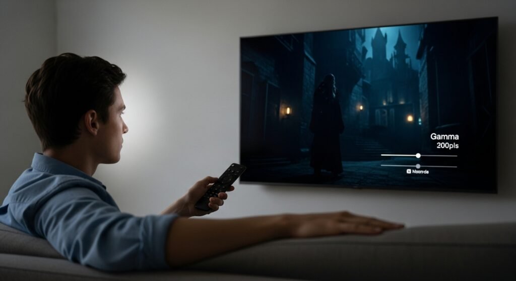 The dark scenes in movies transform into a solid black blob known as crushed blacks so you should adjust your Gamma settings. The Gamma setting should be adjusted to 2.2 which will reveal hidden details in dark areas while protecting the overall visual quality.