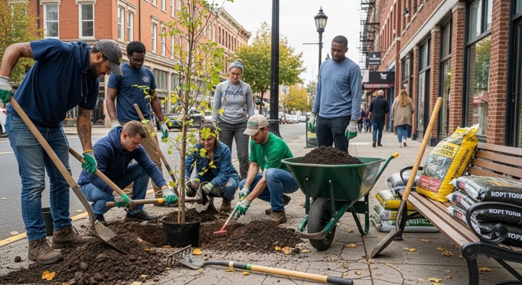 Residents first noticed the project when volunteers began measuring sidewalks and marking planting spots. Curiosity grew quickly. People paused to ask questions. Short conversations started. These early interactions showed that visible community action often encourages interest and participation.