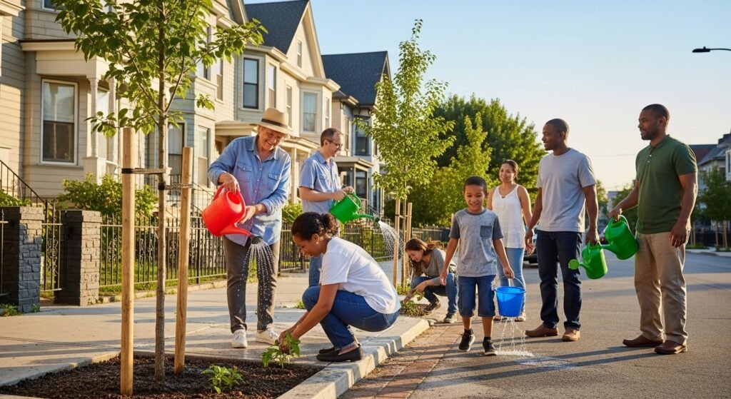 Neighbors who rarely spoke began discussing the project. They shared opinions about shade, maintenance, and neighborhood appearance. The trees quietly created a reason for people to talk. Simple dialogue strengthened everyday connections between residents.