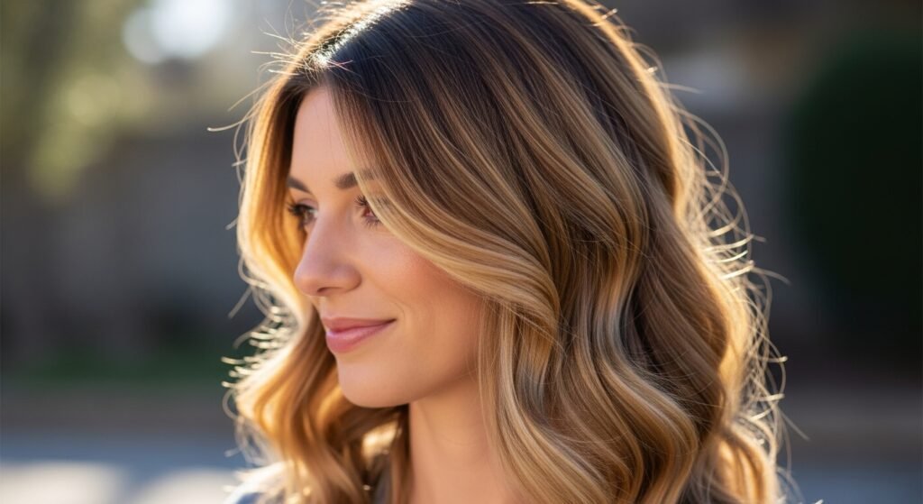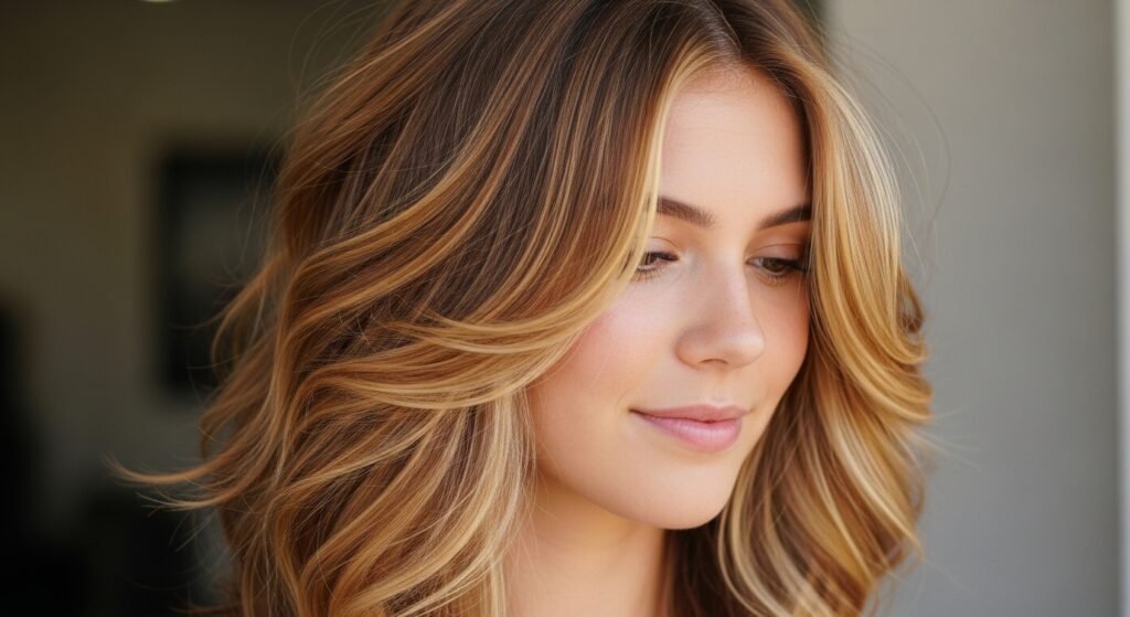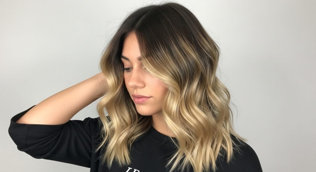 A soft balayage technique blends lighter shades into the mid-lengths and ends. This hand-painted approach creates a natural transition between colors, producing a relaxed and sun-kissed effect that grows out gracefully.