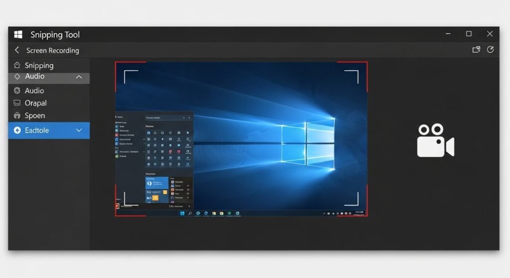 The Snipping Tool now enables users to record screens after they make image captures. The application displays a video camera icon, which users can access after they open the application. The system enables users to record audio while capturing a specific portion of their screen. Users can demonstrate computer tasks through the system without needing to install external software to their devices.