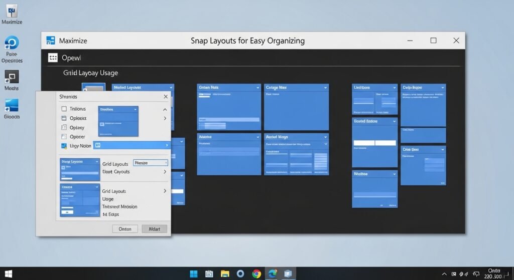 To manage excessive window usage you should position your mouse over the “Maximize” button which appears as a small square located in the upper right corner of any window. The grid layout menu displays different design options through which users can choose their preferred layout. The system enables you to designate a layout which Windows uses to organize your applications into either a dual display mode or a four-section workspace.