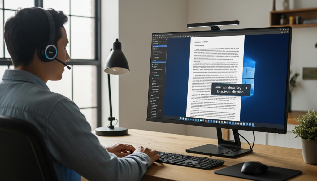 Users can produce documents and emails without needing to type text into the computer manually. Users can activate the dictation tool which operates with high-quality speech recognition by pressing Windows Key + H in any text box. Microsoft develops voice recognition technology which produces accurate transcription results through its automatic punctuation function when users speak.