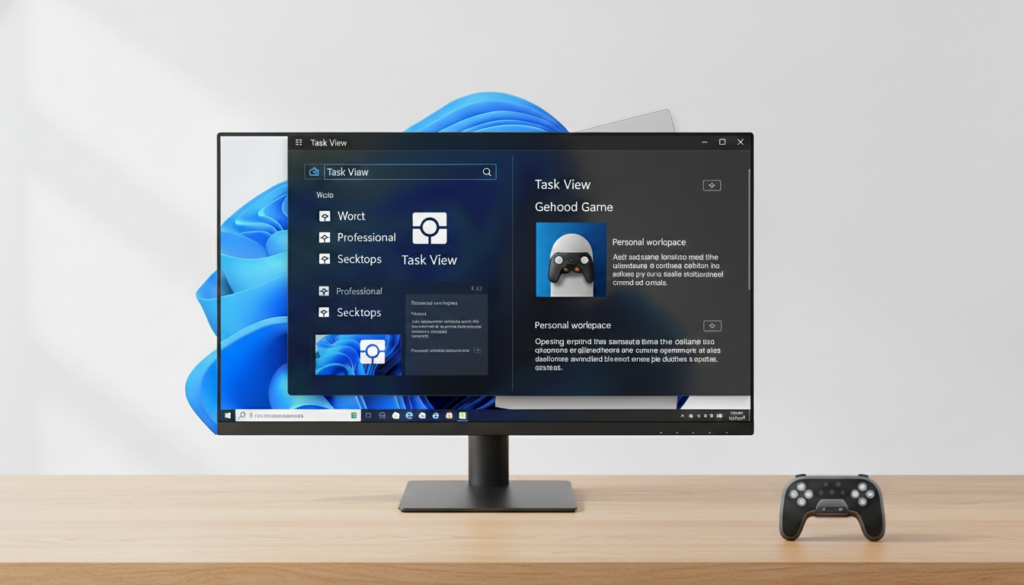 Users who work and play games can establish two different workspaces. Users need to select the Task View icon which displays two overlapping squares from their taskbar. Users can establish two different desktops which contain a professional workspace and a personal workspace. Users can manage two different applications while operating two separate applications at different times through swipe gestures which help them maintain their workflow.