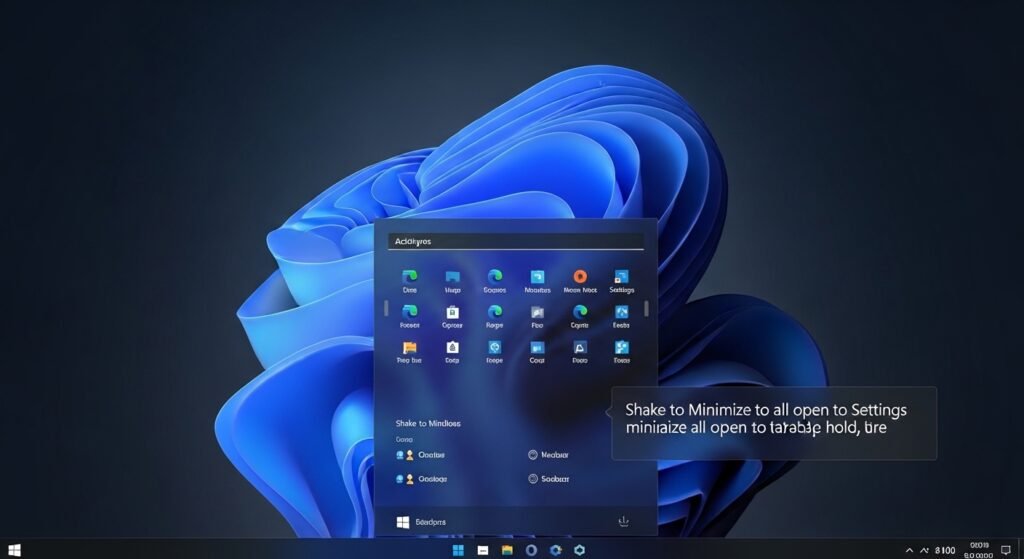 The system contains a hidden function which needs activation through the Settings menu to access its previous version features. Users can minimize all open windows to the taskbar by shaking the window title bar while holding it.
