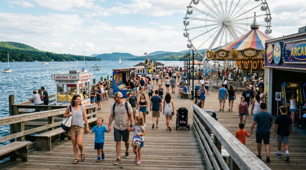Navy Pier provides both entertainment and dining options and Lake Michigan viewing areas. The pier serves as a tourist destination which offers visitors less distinctive experiences than other Chicago locations.