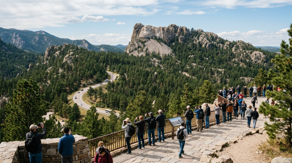 People who visit Mount Rushmore first become amazed by its beauty, but they later discover that the attraction ends too soon. The monument appears smaller than its actual size, which causes most visitors to spend under one hour at the site.