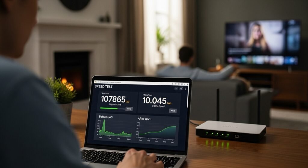 You need to conduct a speed test after activating QoS because someone in your household will be watching videos. The new setting will reduce your “ping” rates while providing you with more stable network performance than what existed before.