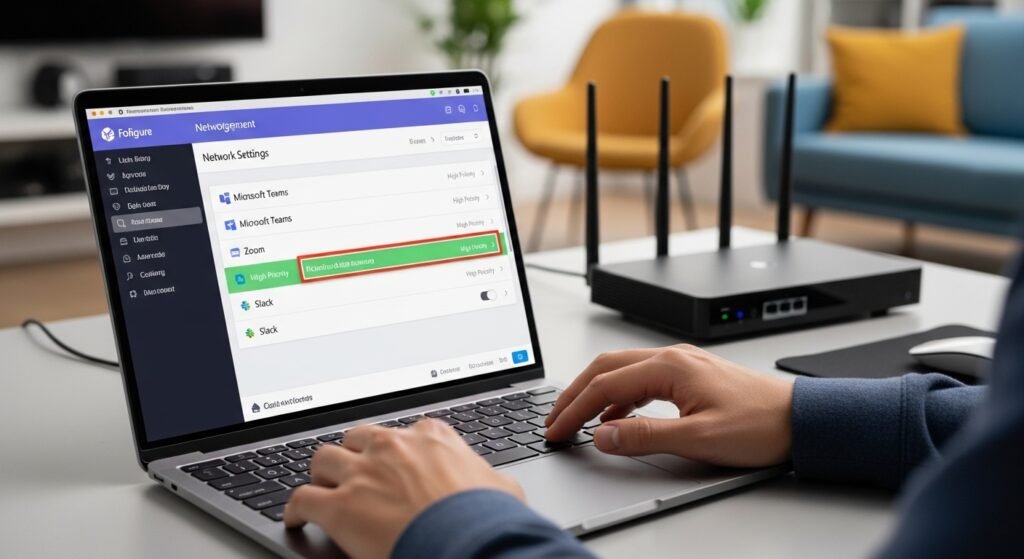 Work-from-home employees establish their router settings to allocate priority access for Microsoft Teams and Zoom and Slack applications. This system guarantees that your video call will maintain perfect audio and video quality even when another family member downloads large files.