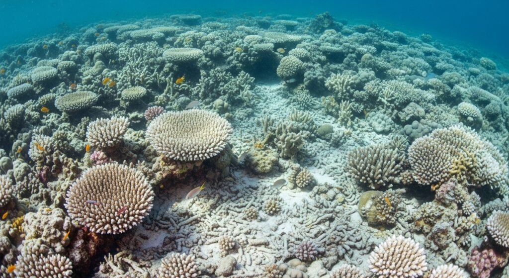 Sea life is characterized by a decrease in the fish stock and destroyed reefs. The problem of overfishing lowers the recovery period. The shell forming organisms are impacted by the chemistry imbalance in ocean acidification. Scientists report that such changes reflect the loss of land based biodiversity instead of the isolated sea problems.