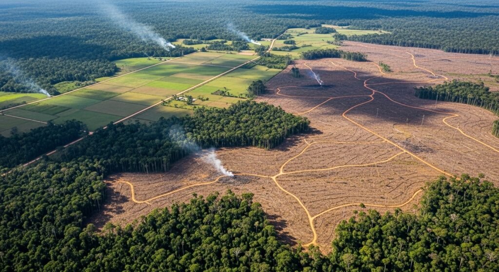 Deforestation, urbanization and agriculturalization decrease the space of life. Some of the most declining areas are tropical forests. Large scale land use change is confirmed by satellite image taken in the past decades. Breeding and feeding habitats are reduced causing a constant stress on the population due to habitat fragmentation.