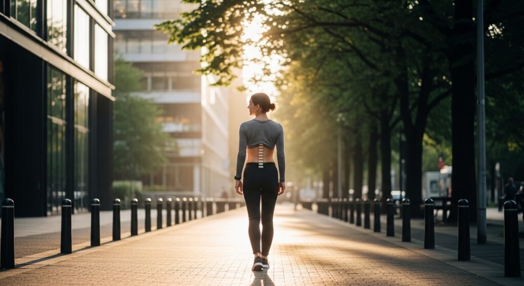 Standing up and moving about can make one more posture-conscious. Pretentious walking may help to develop the back and core muscles in a gentle manner, which may assist in decreasing the level of slouching and enhancing an upright posture over an extended period of time.