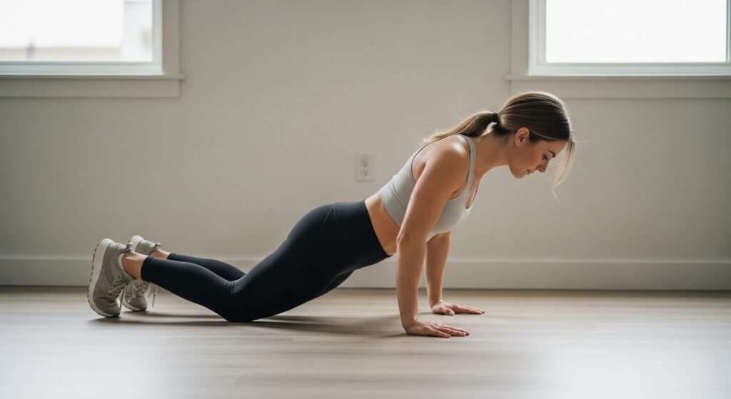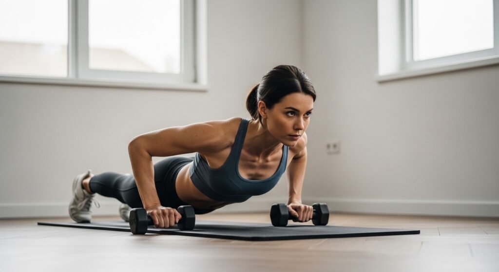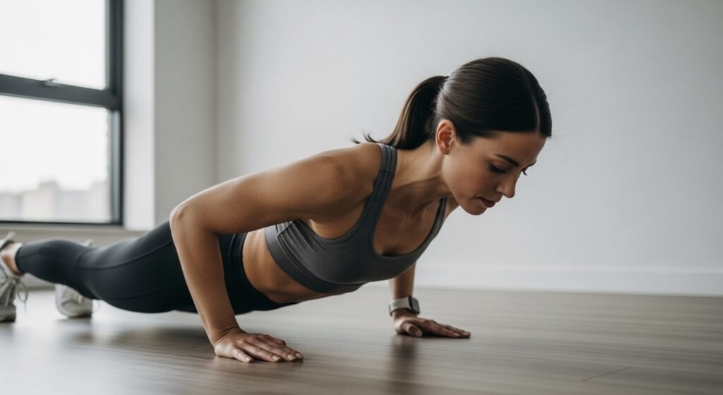 A push-up works as a moving plank exercise because it requires fluid motion. The proper execution demands glute tightening and abdominal core activation. The exercise creates deep core strength which protects your lower back while delivering balanced improvements for all sports activities and daily life tasks.
