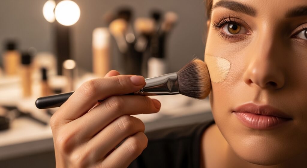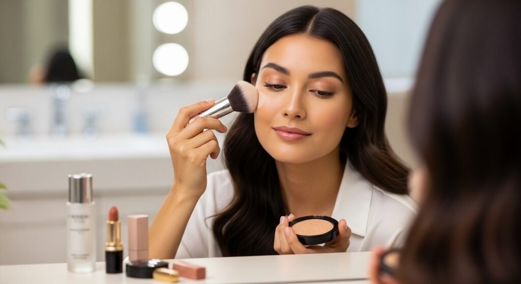 Using a light hand with setting powder avoids a cakey finish. It keeps makeup in place while maintaining a natural skin texture that doesn’t look overly matte or dry.