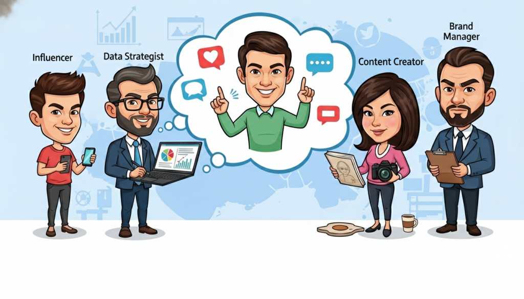 Brands test caricature prompts for audience engagement and comment generation. Marketing teams apply the format to customer personas or industry roles. The approach supports awareness campaigns rather than direct promotion. Performance tracking focuses on shares and saves.