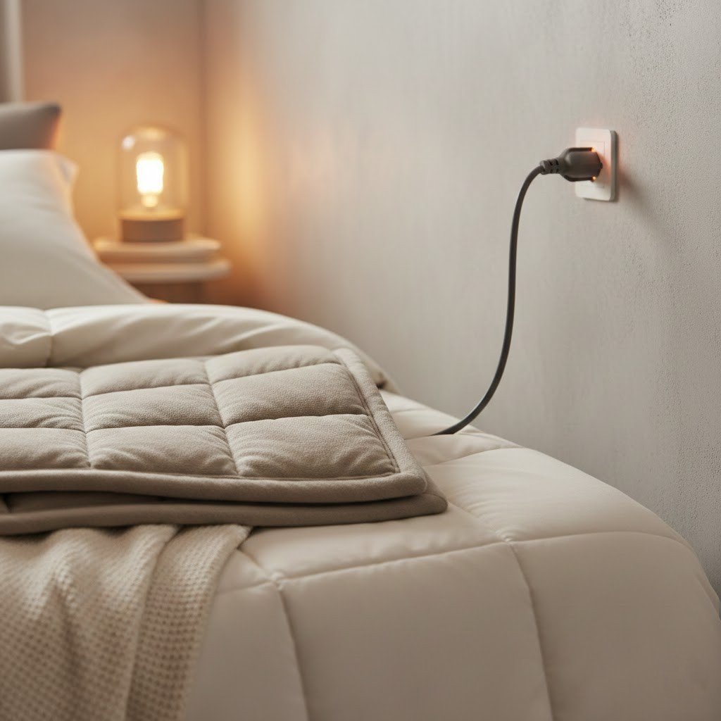 Electric blankets have very thin heating coils that may fray or bend with time. When you leave it on, plugged in, and then fold it, it may form hot spots. That fire risk would apply to the blanket itself and some erratic power draw from a damaged coil that sparks through the outlet next to your wall’s electrical box.