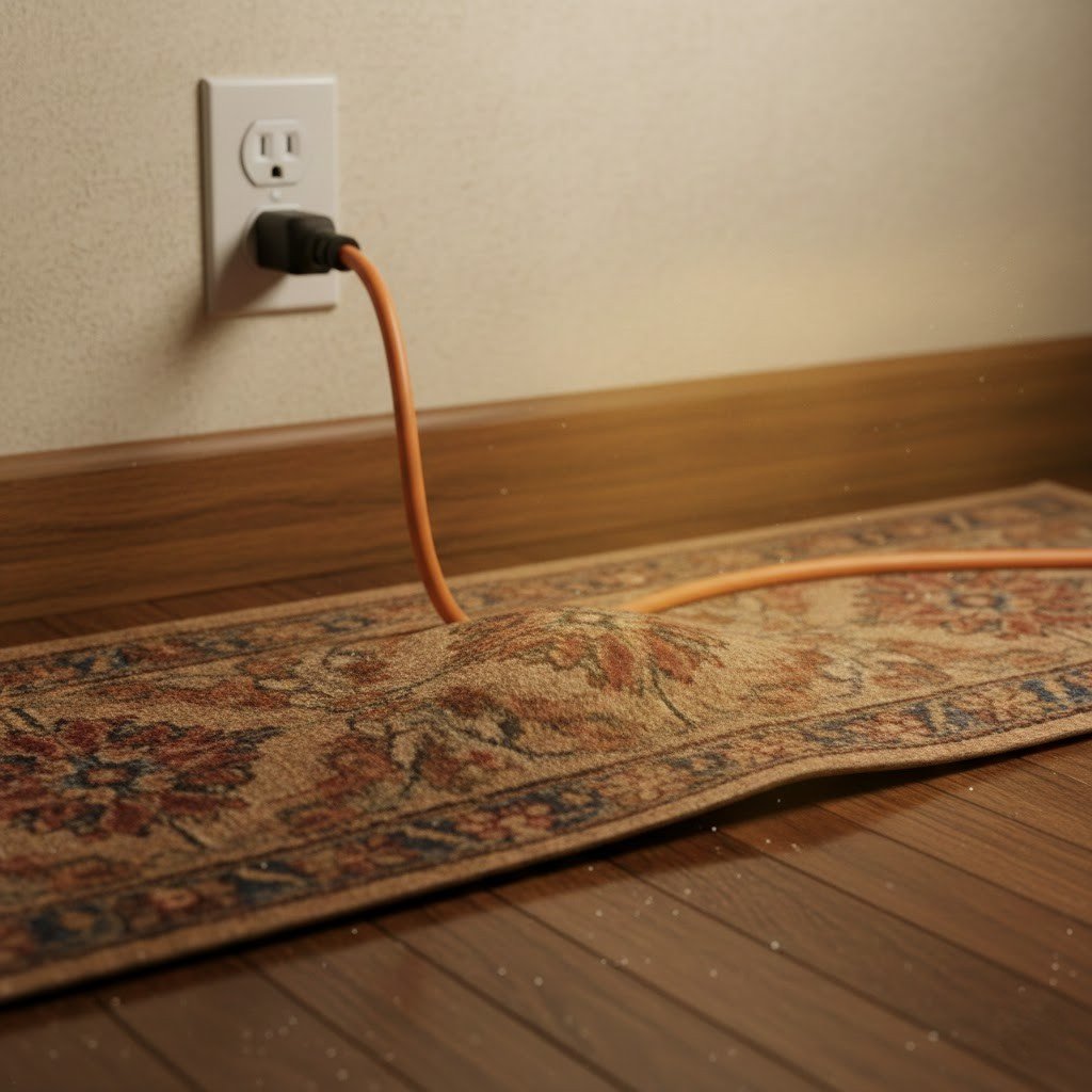 An extension cord ought to be used only temporarily. If you are now using it permanently under the rug or stapled to the baseboard wall to power a lamp or fan, it could trap heat for the cord to build pressure. Compared to “Romex” at the very inside of your walls, the thinner wire used in extension cords may melt and short-circuit, blowing your entire breaker line.