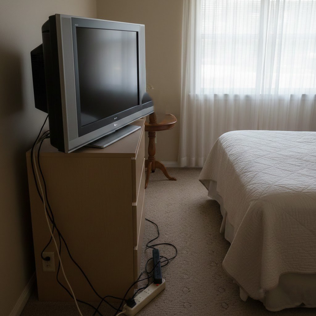 Formerly called vampire draw, plasma or LCD TVs. Waiting patiently for the evil one to activate it with his wand, the remote control. Disconnecting them from your guest room or basement for a couple of weeks would save energy and allow the internal power board not to fry itself and short out your outlet.