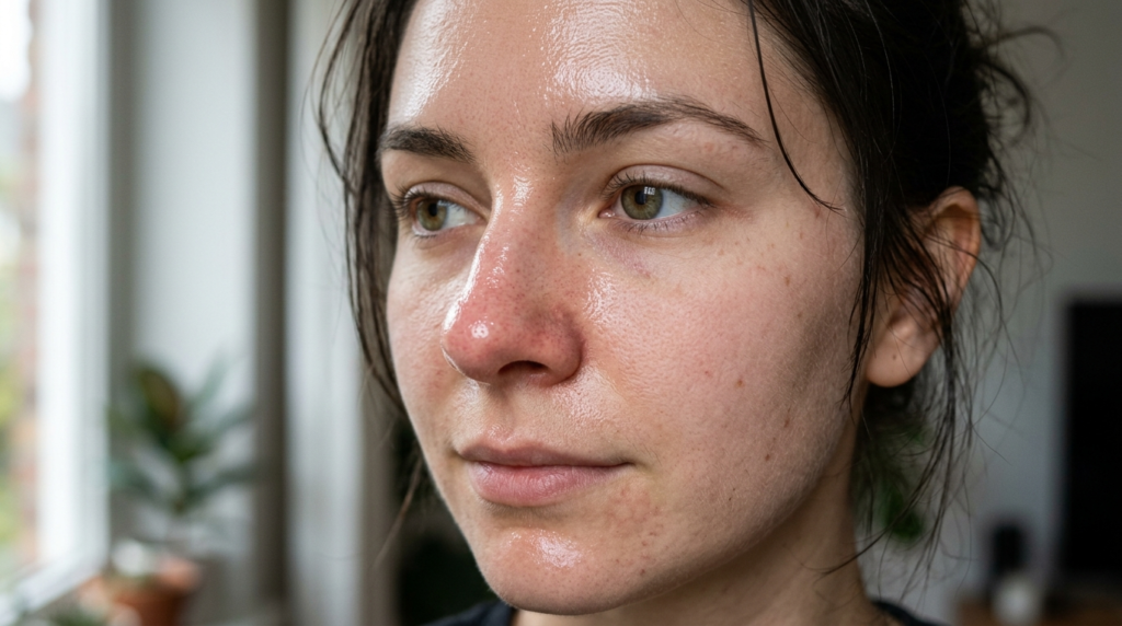 Your skin’s oiliness or dryness will change when you select different products. Some routines control oil production while other routines result in temporary oil production changes.