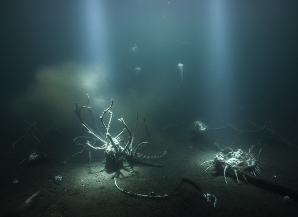 The overwhelming area of the abyss means that in most cases there is little food. Most of the animals consume marine snow, which is a slow-motion shower of dead plankton, fish scales, and crap from the top. This is basically a buffet of ocean leftovers.