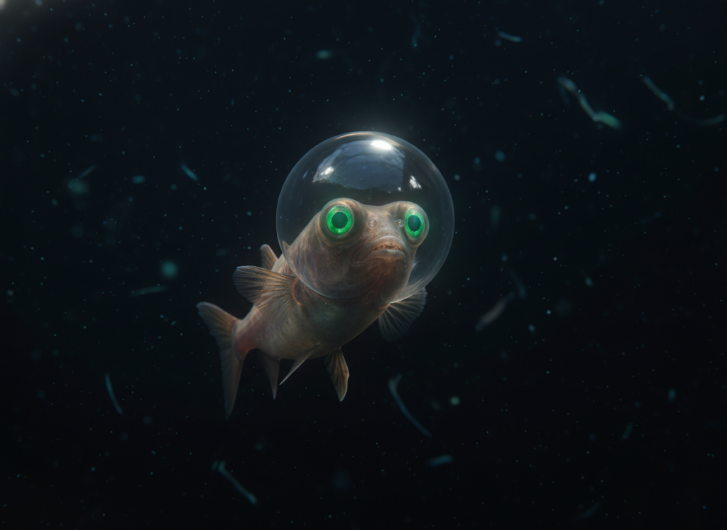 Most of the creatures living in the deep sea have absolutely transparent bodies. Transparency, which does make the best and ultimate camouflage, is also illusion in a world where nothing can be called completely safe. One example, Barreleye fish, has a completely fluid-filled, see-through forehead and thus can look up through its own skull.