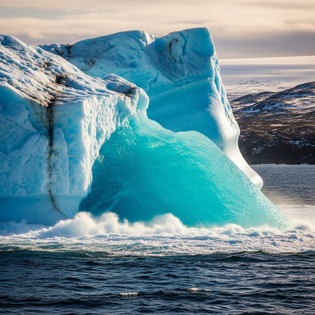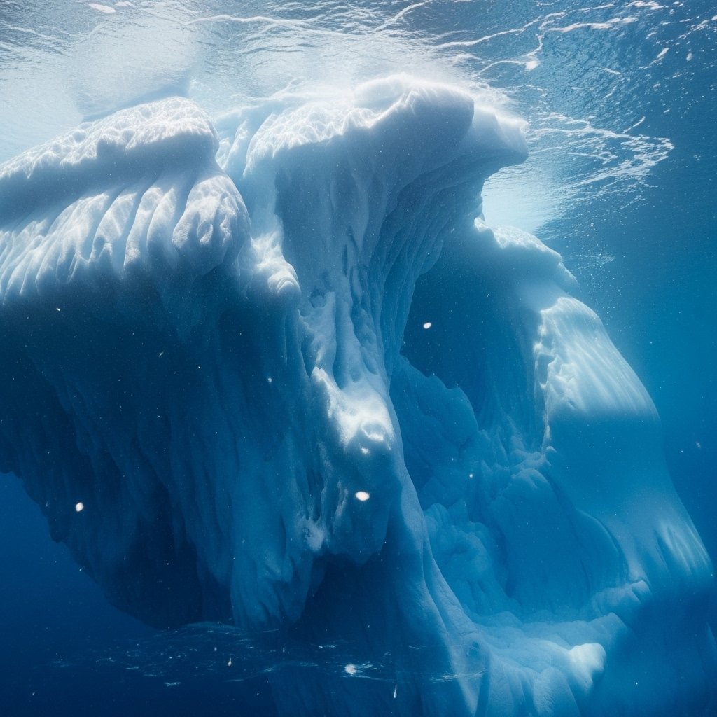 Icebergs experience strong pressure below sea level. Water pressure forces air from internal spaces. Compression increases optical clarity. Clear ice interacts with sunlight in a focused manner. Blue wavelengths dominate reflection under such conditions, especially along submerged or recently exposed faces.
