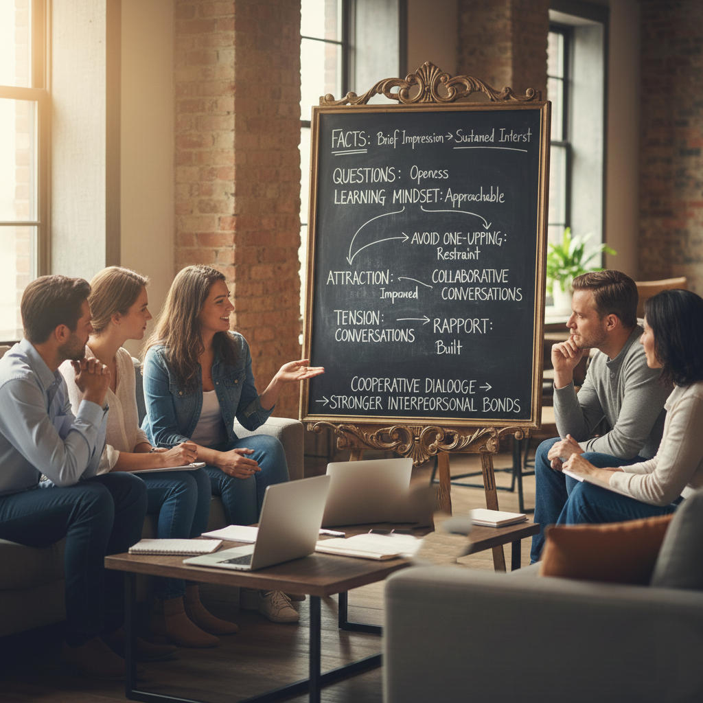 Facts impress briefly. Curiosity lasts longer. Questions signal openness to learning. Learning mindset feels approachable. Approachability improves attraction. You avoid one upping others. Such restraint reduces tension. Conversations turn collaborative. Collaboration builds rapport. Social research links cooperative dialogue with stronger interpersonal bonds across varied settings.
