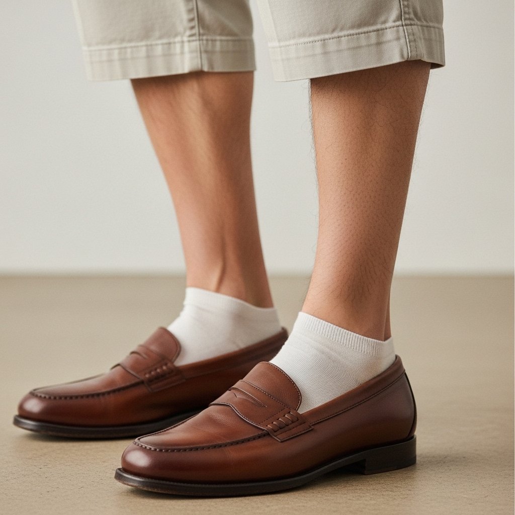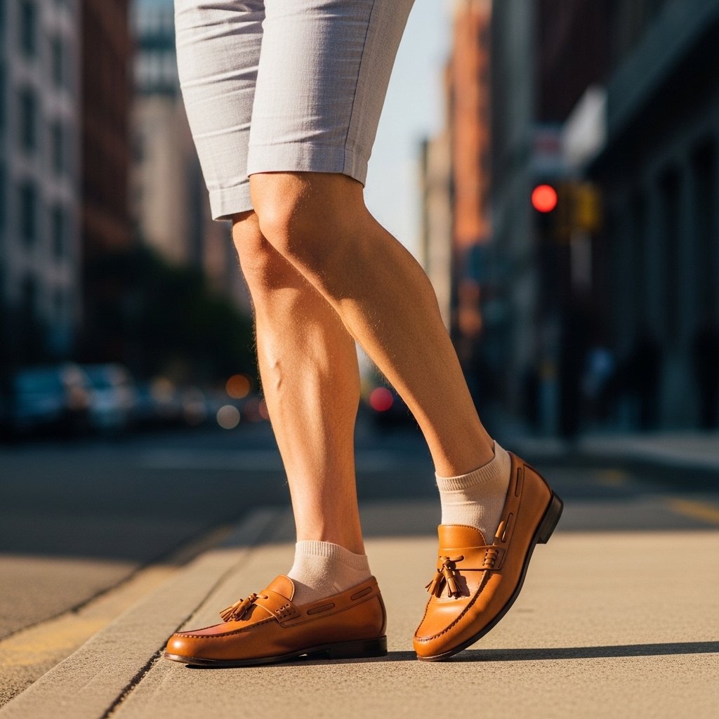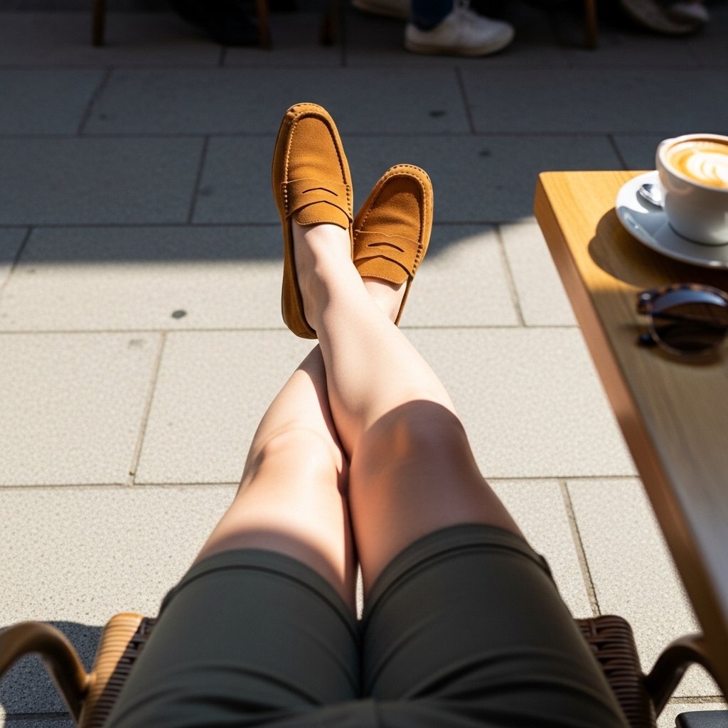 Loafers with shorts expose ankles and lower legs, shifting focus toward grooming. Clean footwear surfaces matter more. Light maintenance like brushing suede preserves appearance. Neglect draws attention due to exposed styling. Summer outfits rely on fewer layers, raising visibility of details.